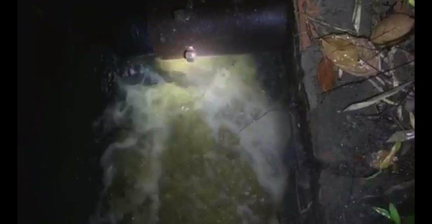 5月21日凌晨四点十五分该管道排出的深黑色工业废水