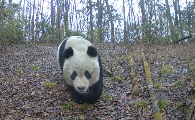 绵阳北川国有林场:萌态十足!红外相机记录野生大熊猫活动画面